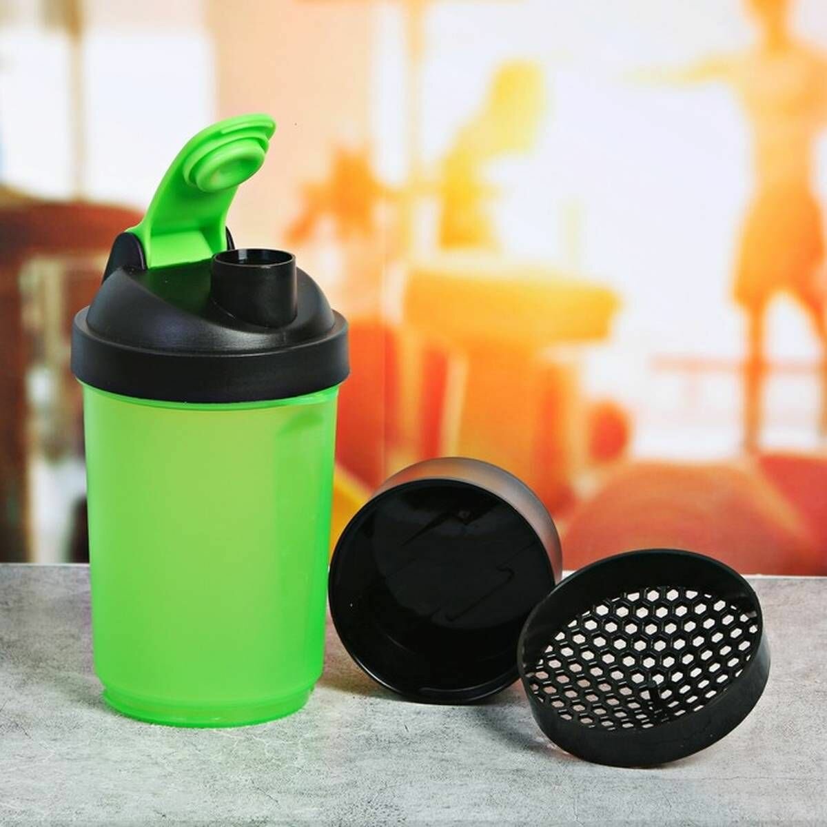 Шейкер спортивный "Вид 3", зелёный, с чашей под протеин 500 мл