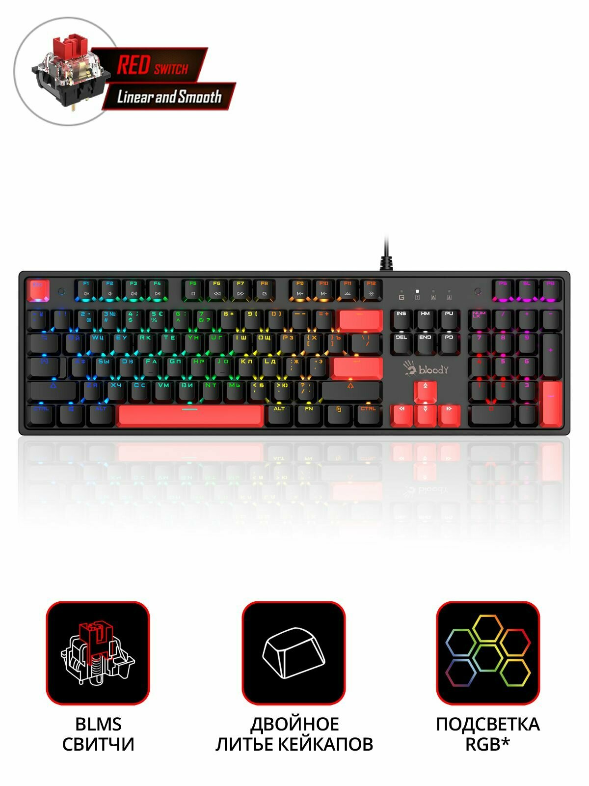 Клавиатура A4Tech Bloody B950, русские и английские буквы, черный (b950)
