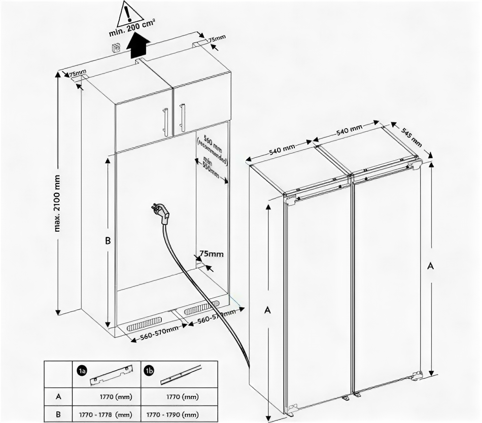 | Дополнительная информация | Объем мороз. камеры (нетто, л) - 197, Размораживание мороз. камеры - No Frost, Общая ширина двух устройств - 108 см |