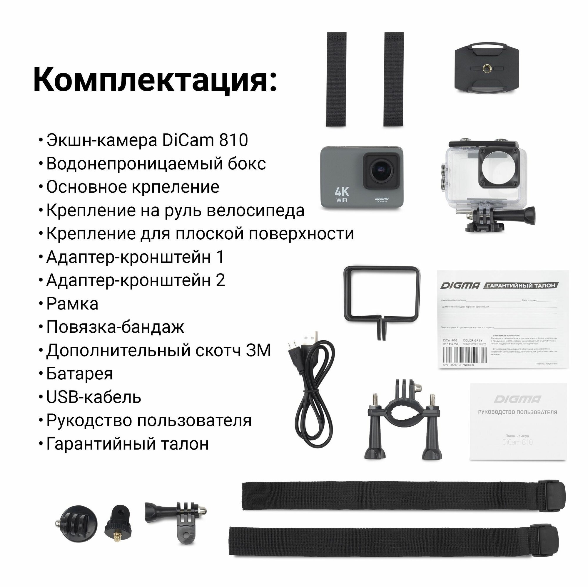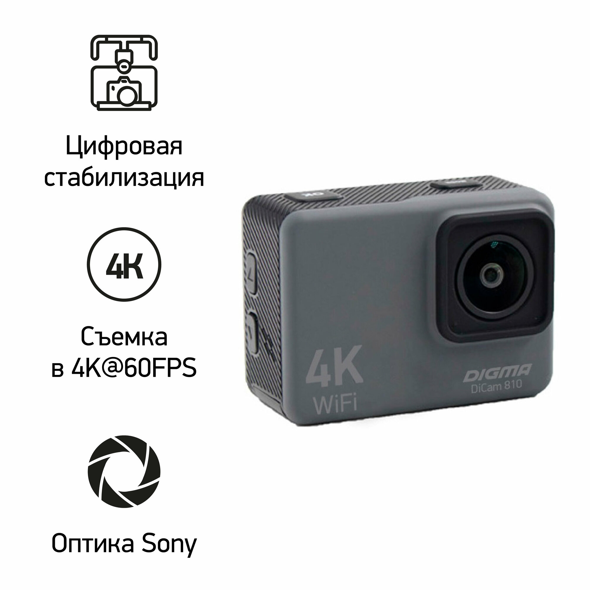 экшн камера, экшен камера Digma DiCam 810 Grey 4K, WiFi