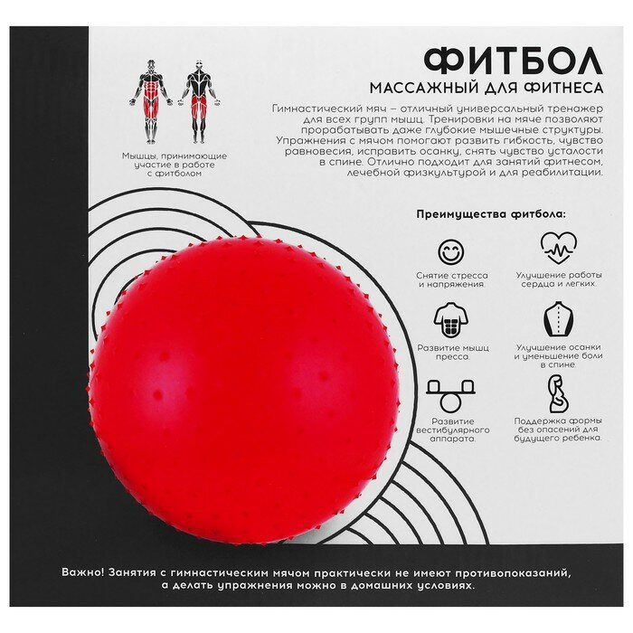 Фитбол, ONLITOP, d=65 см, 1000 г, массажный, цвета микс./В упаковке шт: 1 интересное: