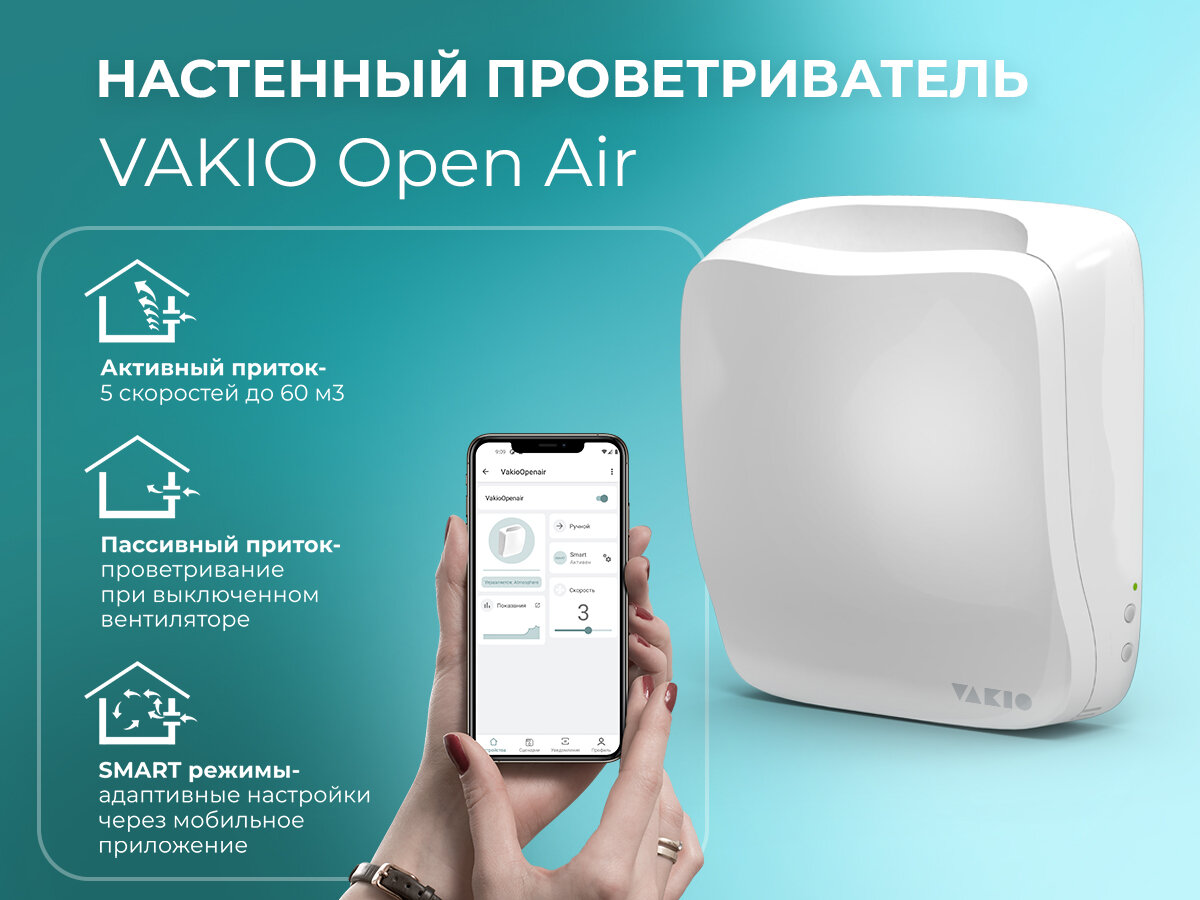 VAKIO OPEN AIR, проветриватель с автоматической заслонкой, Умный дом, Яндекс Алиса, приложение
