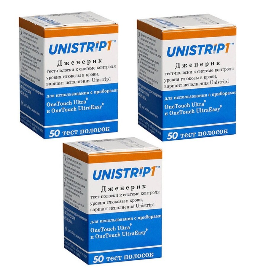 Тест-полоски "Юнистрип1" (Unistrip1) для использования с приборами "One Touch Ultra", "One Touch Ultra Easy" №50, 3 упаковки интересное: