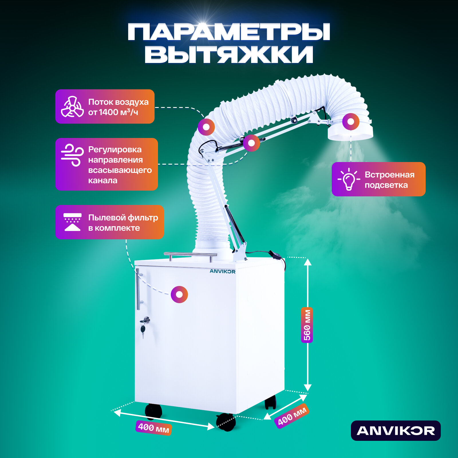 Вытяжка стандарт ANVIKOR VC-AIR-1 для маникюра и педикюра с подсветкой и гофрой напольная интересное: