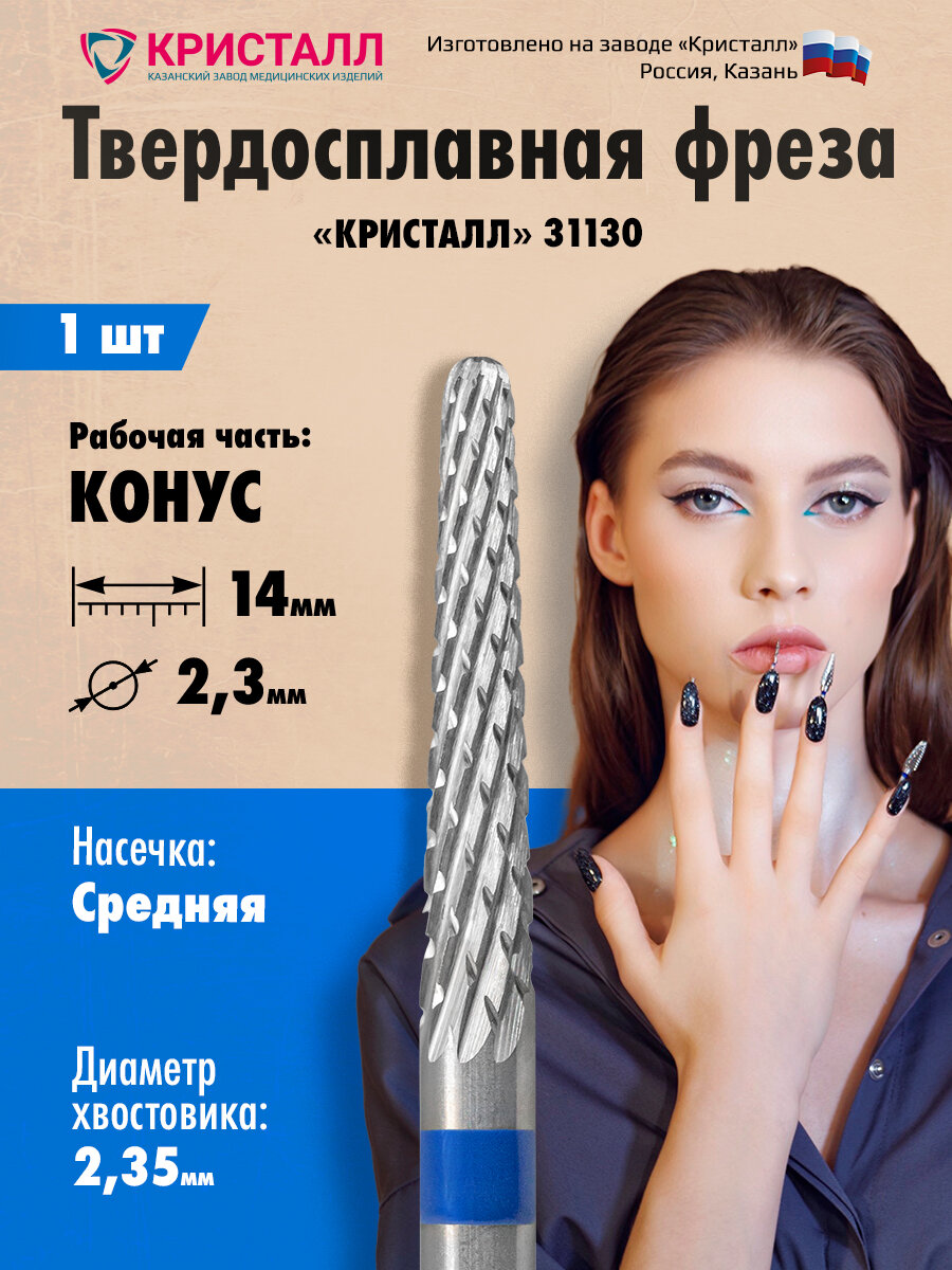 Фреза твердосплавная Конус, синяя, (средняя), 31160, Кристалл