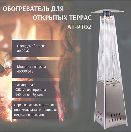 Газовый обогреватель для открытых террас AT-PT02 интересное: