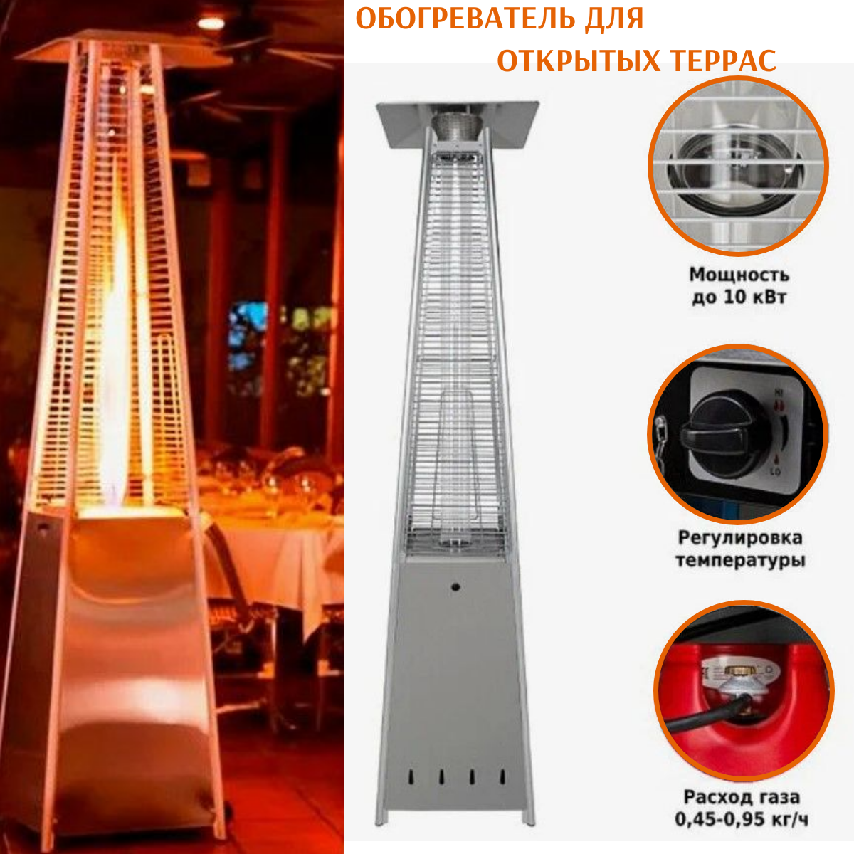 | Тип газового обогревателя | уличный обогреватель |