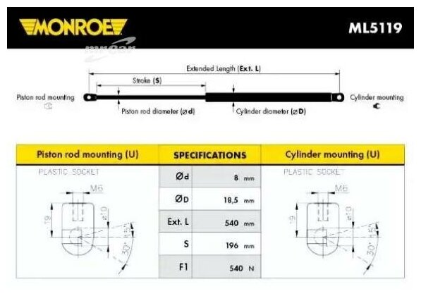 MONROE ML5119 Газовый упор багажника интересное: