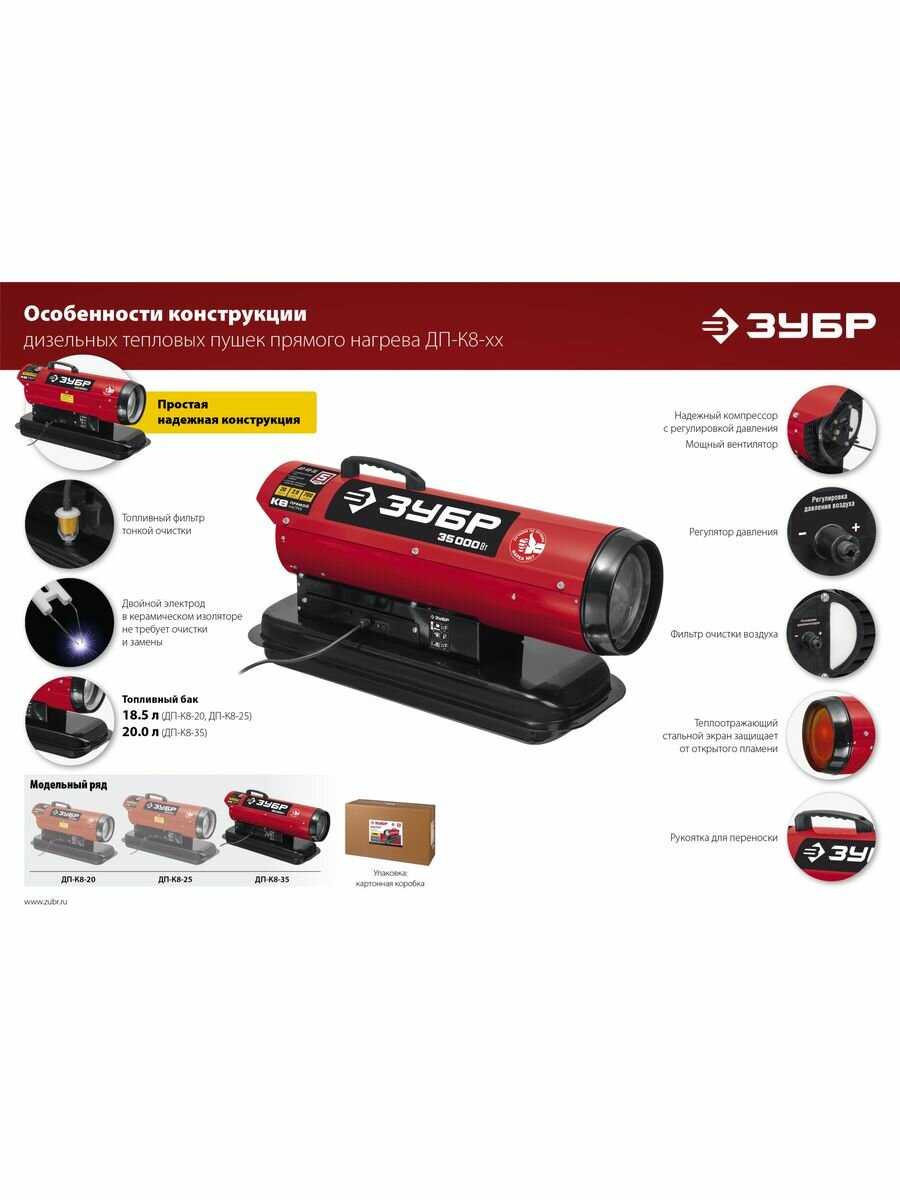 Дизельная тепловая пушка ЗУБР ДП-К8-35 без горелки (35 кВт) красный