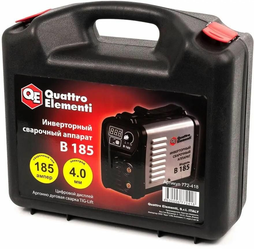 Аппарат электродной сварки, инвертор Quattro Elementi B 185 (185 А, ПВ 80%, до 4.0 мм, 5.0 кг, Дисплей, TIG-Lift, от 160В, кейс)