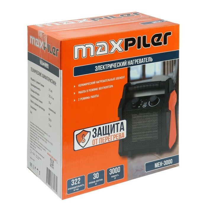 Тепловая пушка MAXPILER MEH-3000, электрическая, 2000/3000 Вт, 210 м3/ч, до 30 м2 интересное: