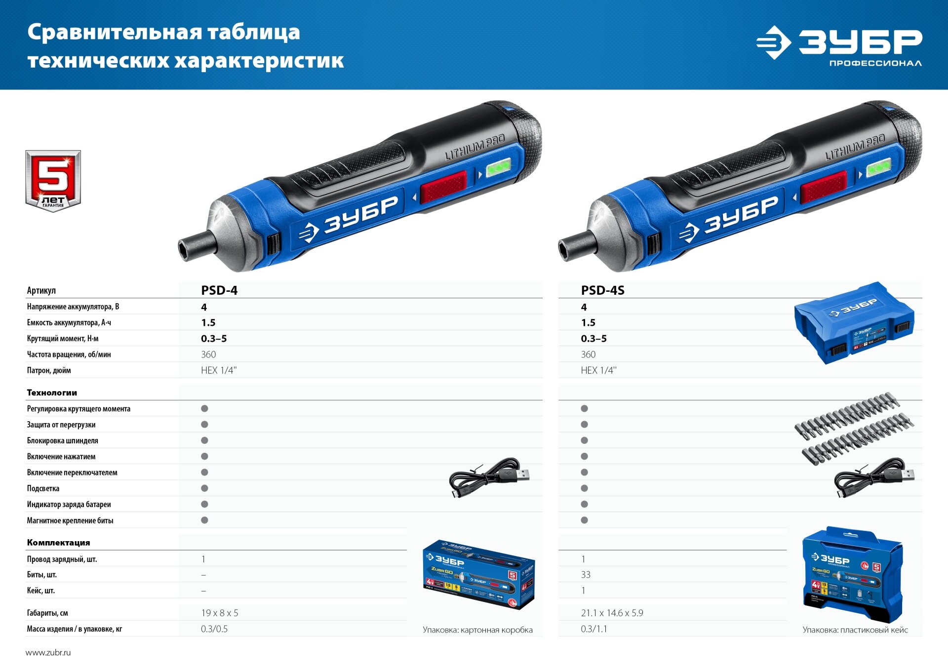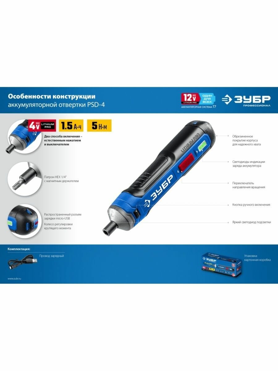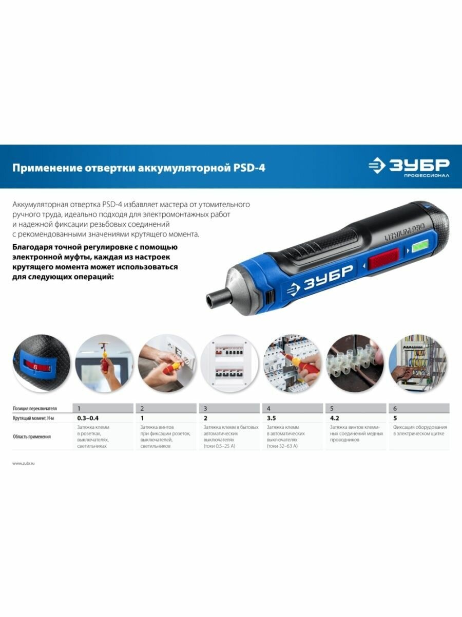 ЗУБР Профессионал PSD-4 отвертка аккумуляторная 4 Vmax, в коробке ( PSD-4 )