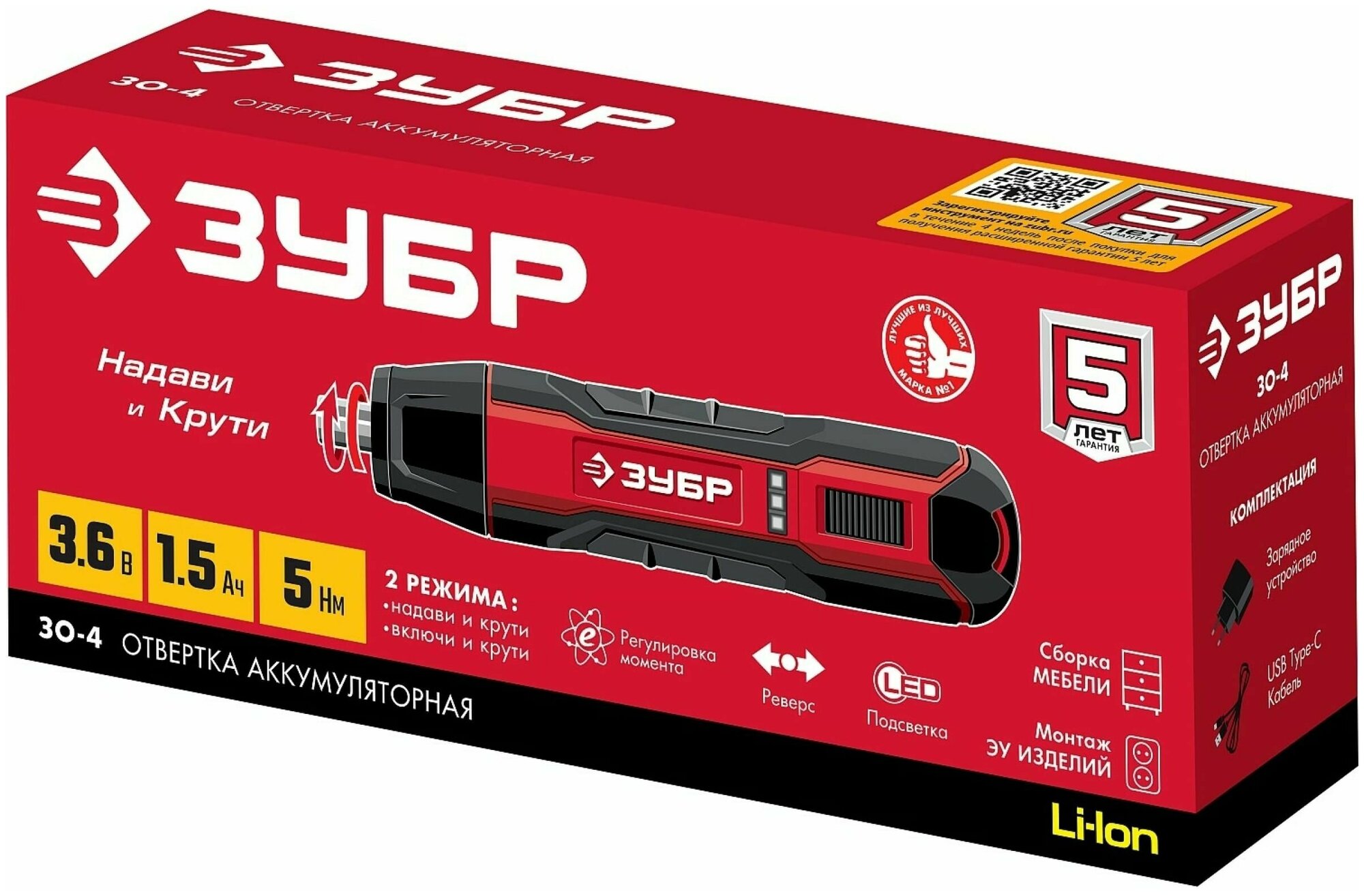ЗУБР 3.6 В, аккумуляторная отвертка (ЗО-4)