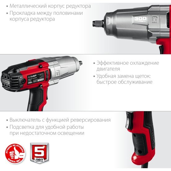 ЗУБР 300 Н·м, 350 Вт, ударный гайковерт (ГС-300)