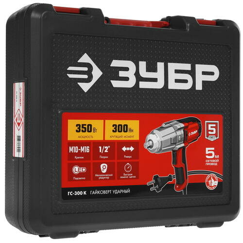ЗУБР 300 Н·м, 350 Вт, кейс, ударный гайковерт (ГС-300 К)