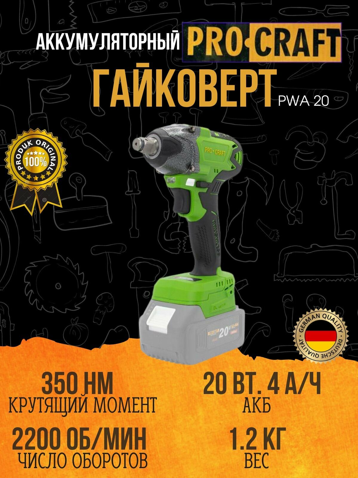 Аккумуляторный гайковерт Procraft PWA20 (1 акб+1 зу) интересное: