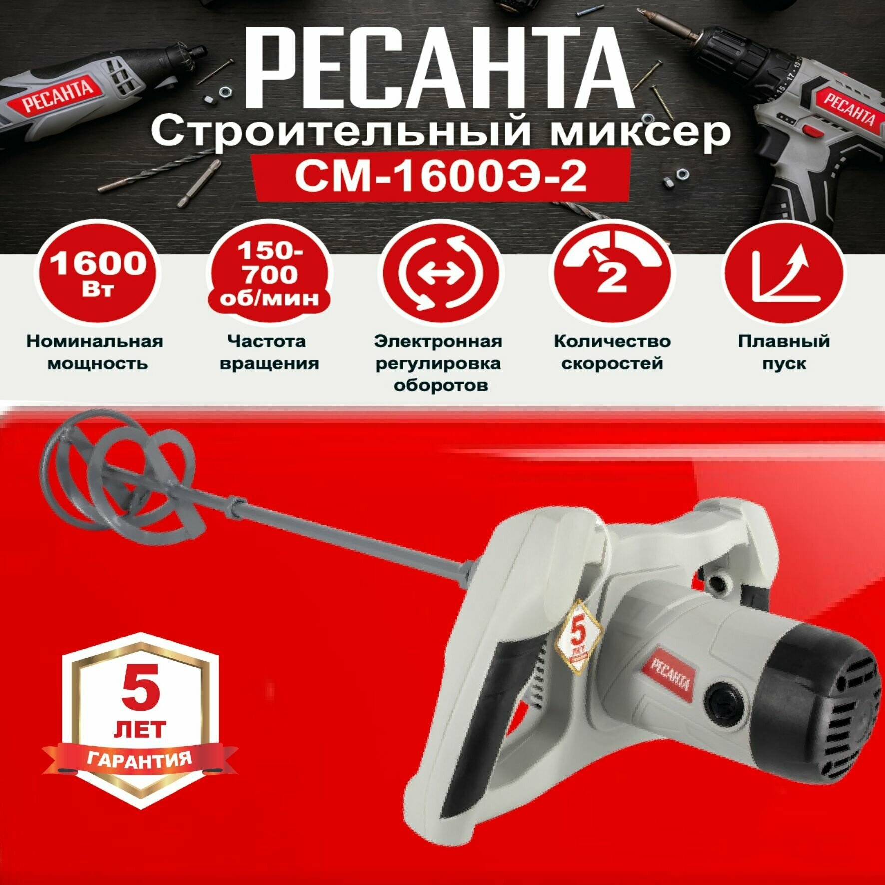 Строительный миксер Ресанта СМ-1600Э-2 75/20/1 .