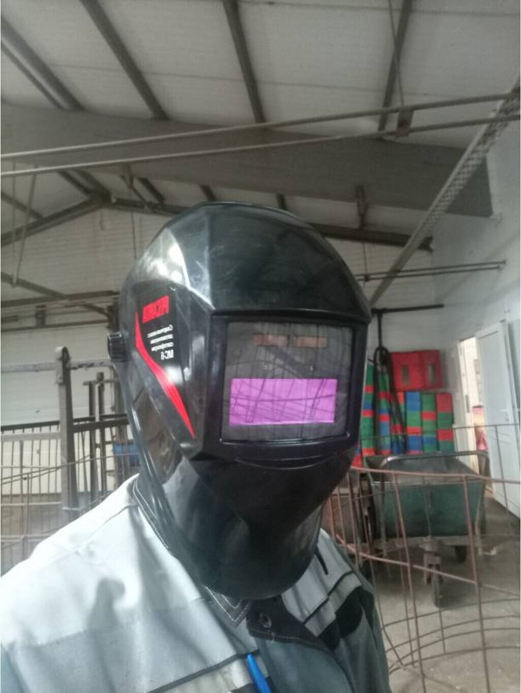 Сварочный аппарат у нас есть, а вот маска была допотопная. Выбрал с автоматическим светофильтром. Окошко у маски небольшое, но для работы устраивает. Оголовник удобный из пластика.