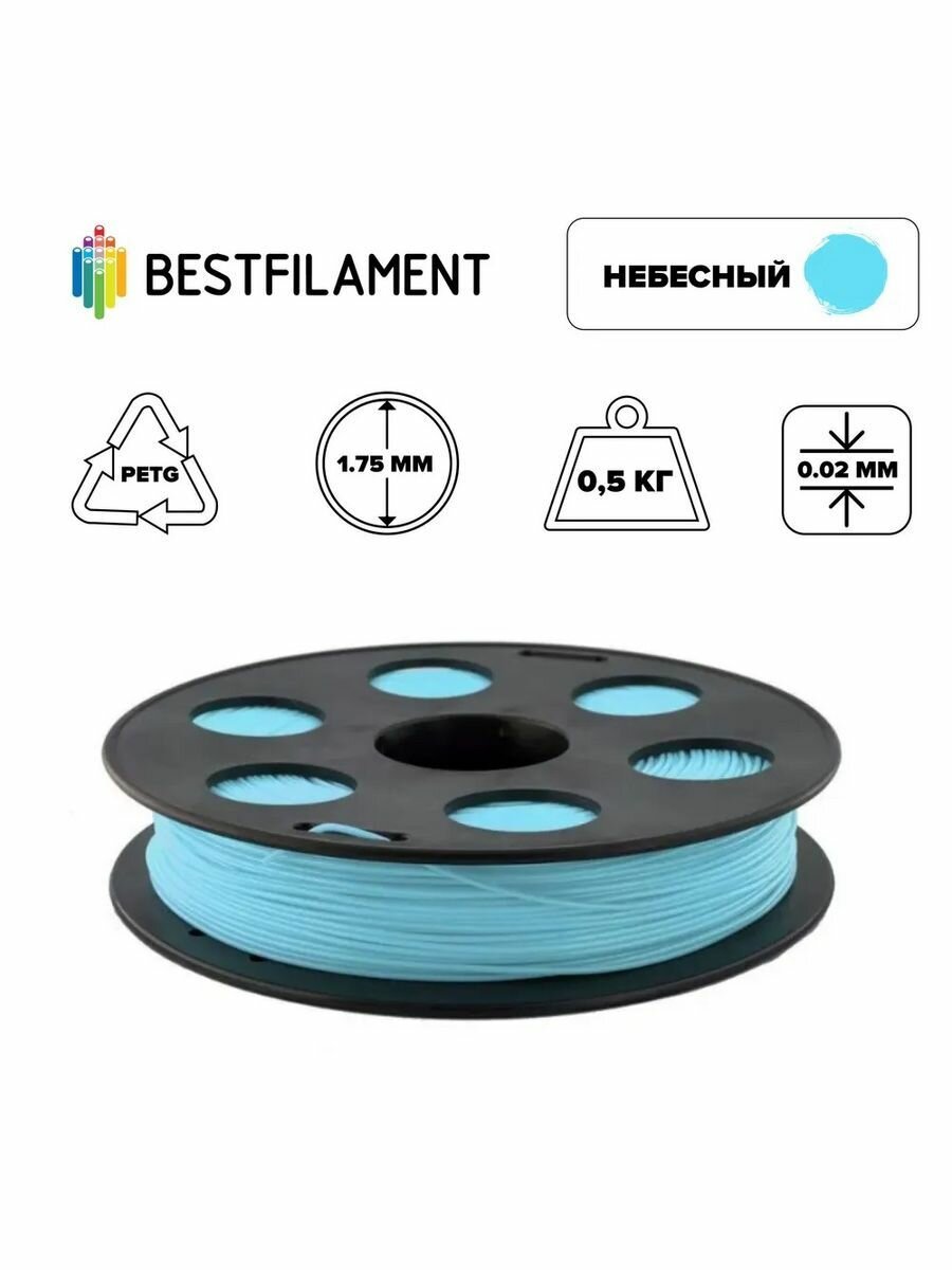 Купить PETG Небесный 500 гр. 1.75 мм пластик Bestfilament для 3D-принтера
