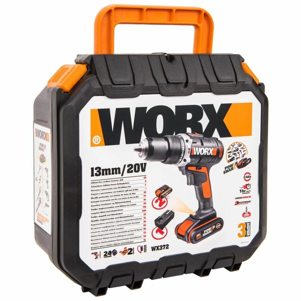 Дрель-шуруповерт WORX Дрель-шуруповерт ударная аккумуляторная WORX WX372, 20В, 50Нм, 2 Ач x2, кейс