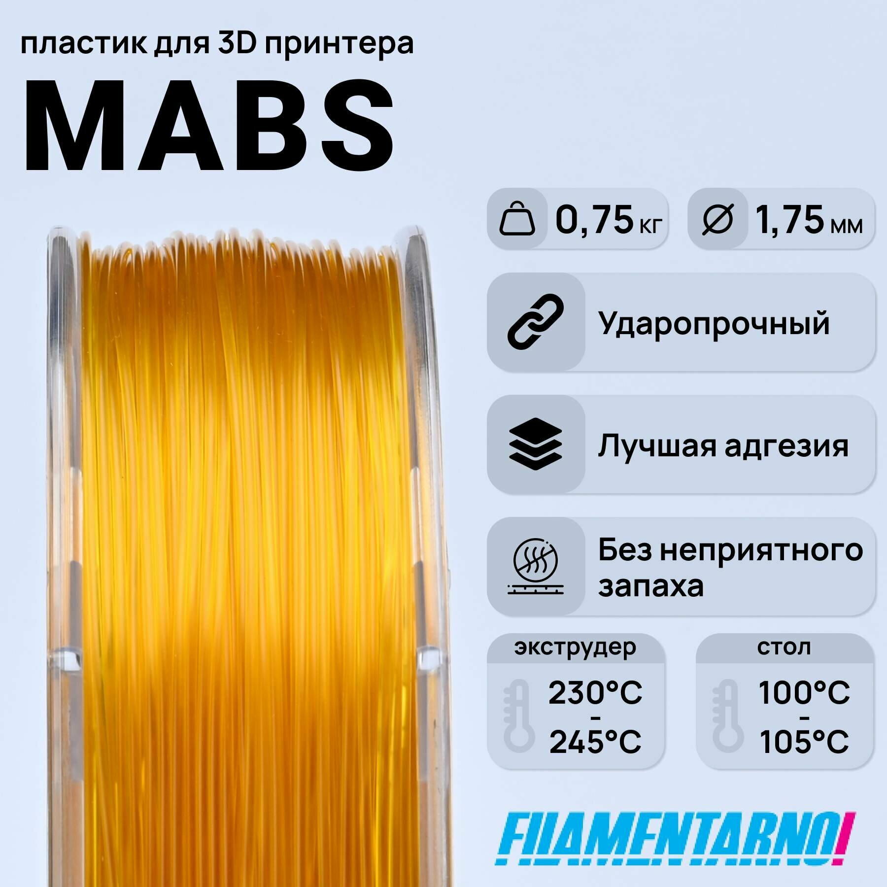 Купить mABS желтый прозрачный 750 г, 1,75 мм, пластик Filamentarno для 3D-принтера