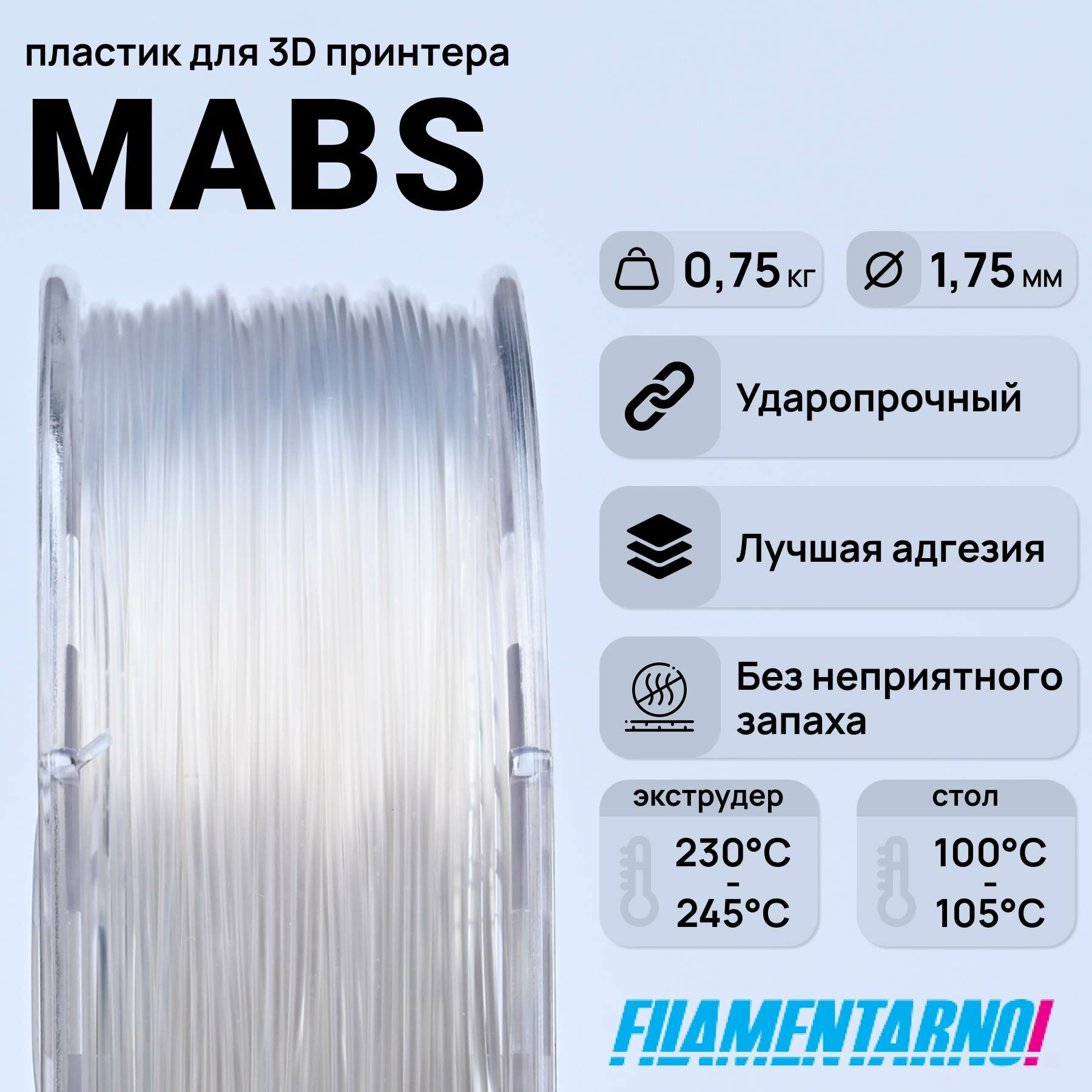Купить mABS натуральный прозрачный 750 г, 1,75 мм, пластик Filamentarno для 3D-принтера