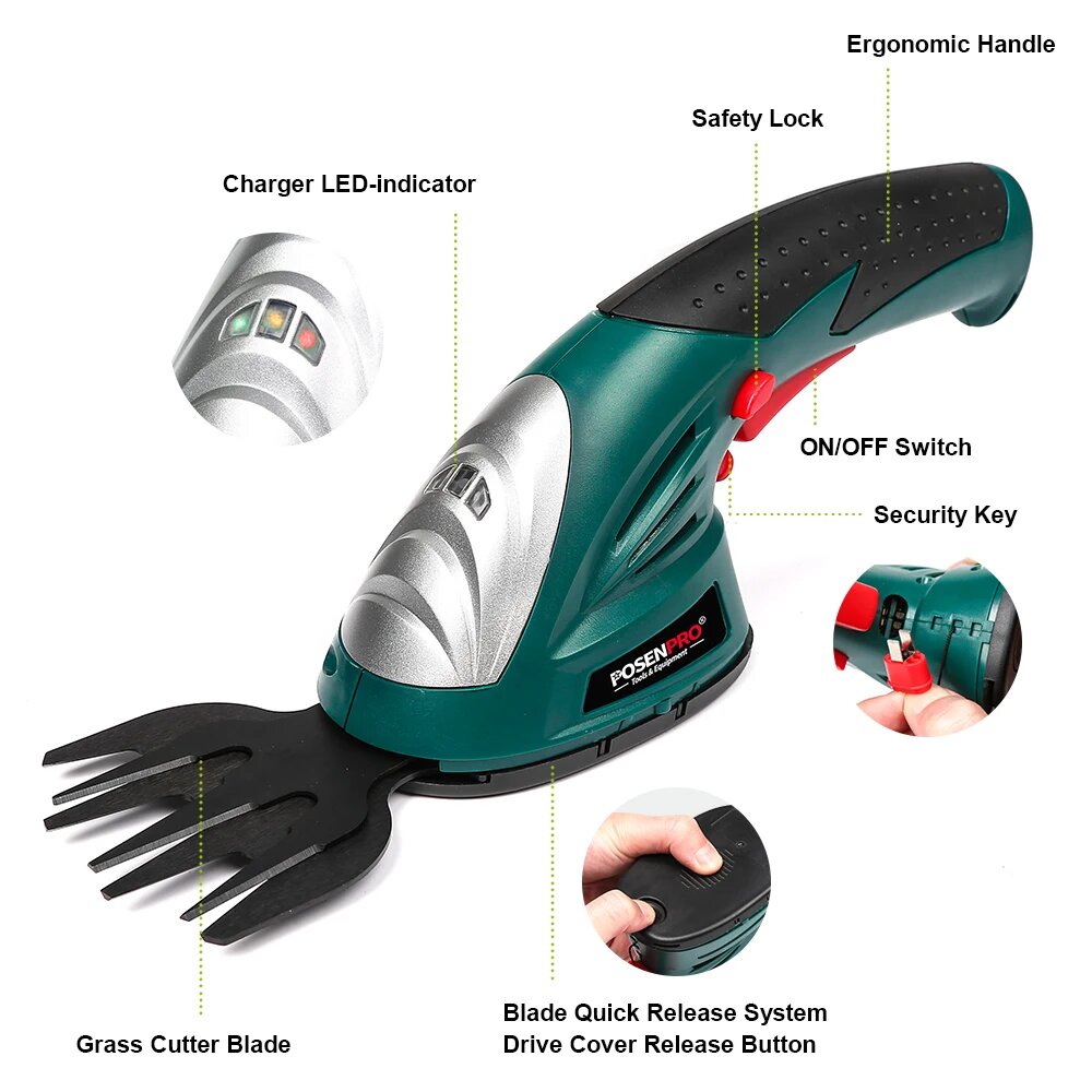 Купить Кусторез / ножницы для травы на аккумуляторе POSENPRO 7,2 V 1.5Ah 2 в 1 триммер для травы
