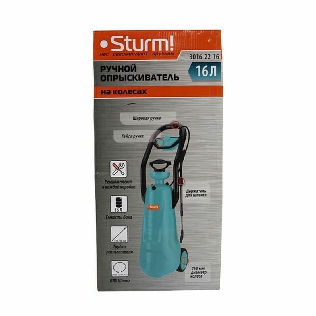Опрыскиватель садовый Sturm 3016-22-16 с ручн насос, на колесах с кейсом