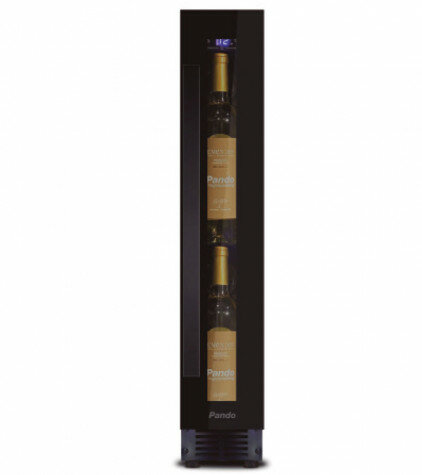 Встраиваемый винный шкаф Pando PVZB 15-9 CRL, черное стекло, ширина 15 см, вместимость 9 бутылок, LED-освещение, УФ-защита