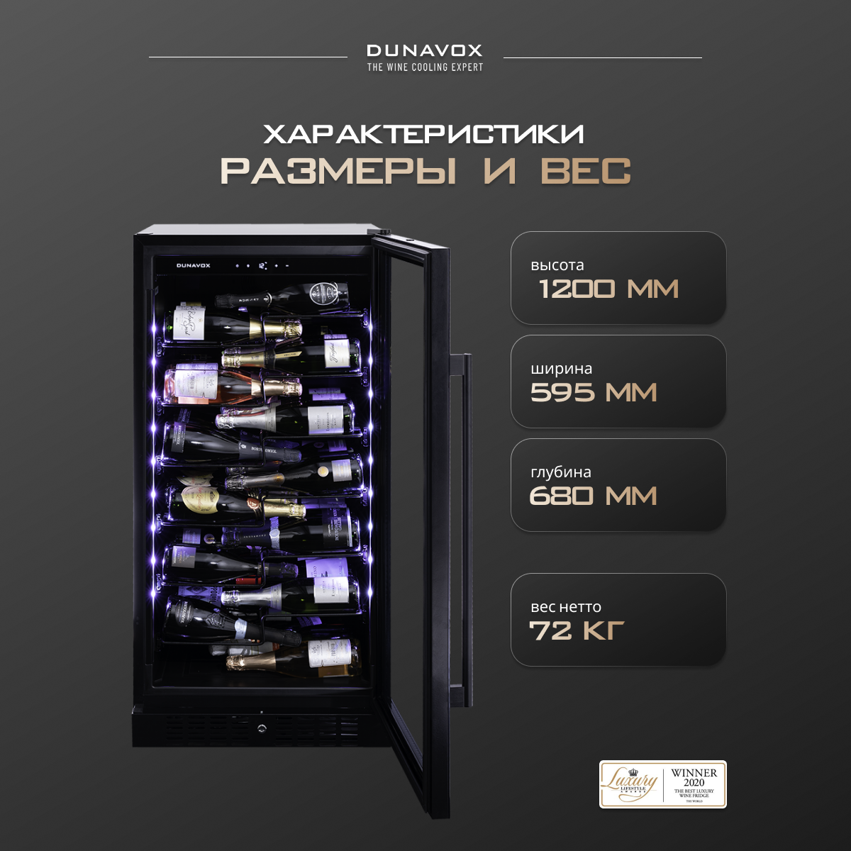Ниже Вы можете прочитать отзывы на Винный шкаф Dunavox DX-70.258B, ознакомится с подробными характеристиками, посмотреть интересные обзоры и фотографии на Винный шкаф Dunavox DX-70.258B.