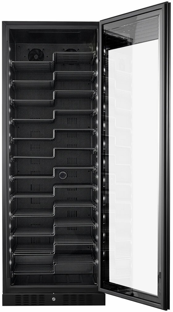 | Отзыв: | Высококачественный винный шкаф, по крайне мере внешне, выглядит серьезно. Огромный плюс, что в отличии от других винных шкафов, этот имеет электронное табло и управление сверху шкафа, не надо дверь открывать, чтоб отрегулировать. Вмещает 143 бутылки, сам по себе монотемпературный, не шумный, всего лишь 40Дб. Выполнен из металла, как внешне, так и полки, дверь имеет защитное покрытие от ультрафиолетовых лучей. Подсветка желтая и RGB. |