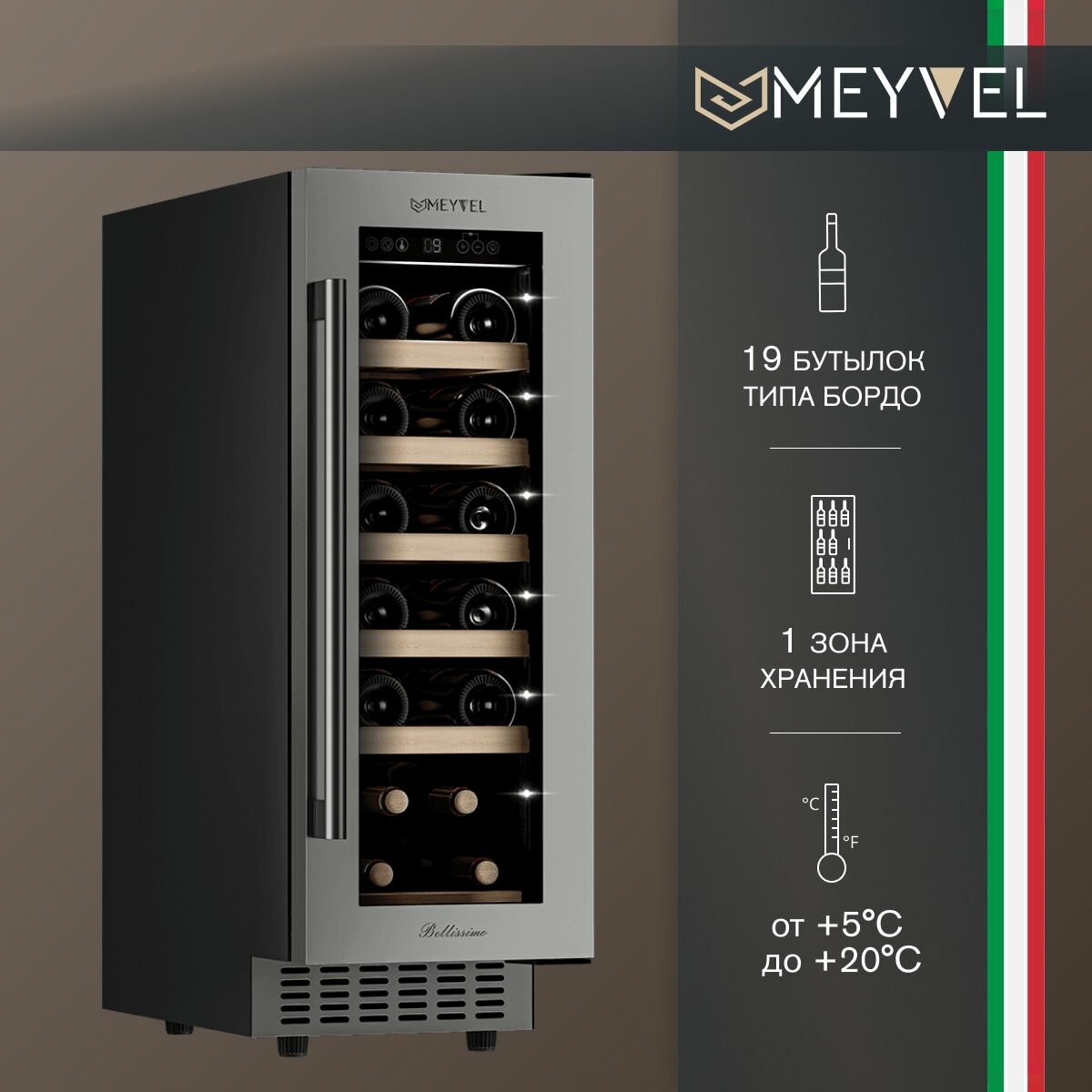 Винный холодильный шкаф Meyvel MV19-KST1 компрессорный (встраиваемый / отдельностоящий холодильник для вина на 19 бутылок)