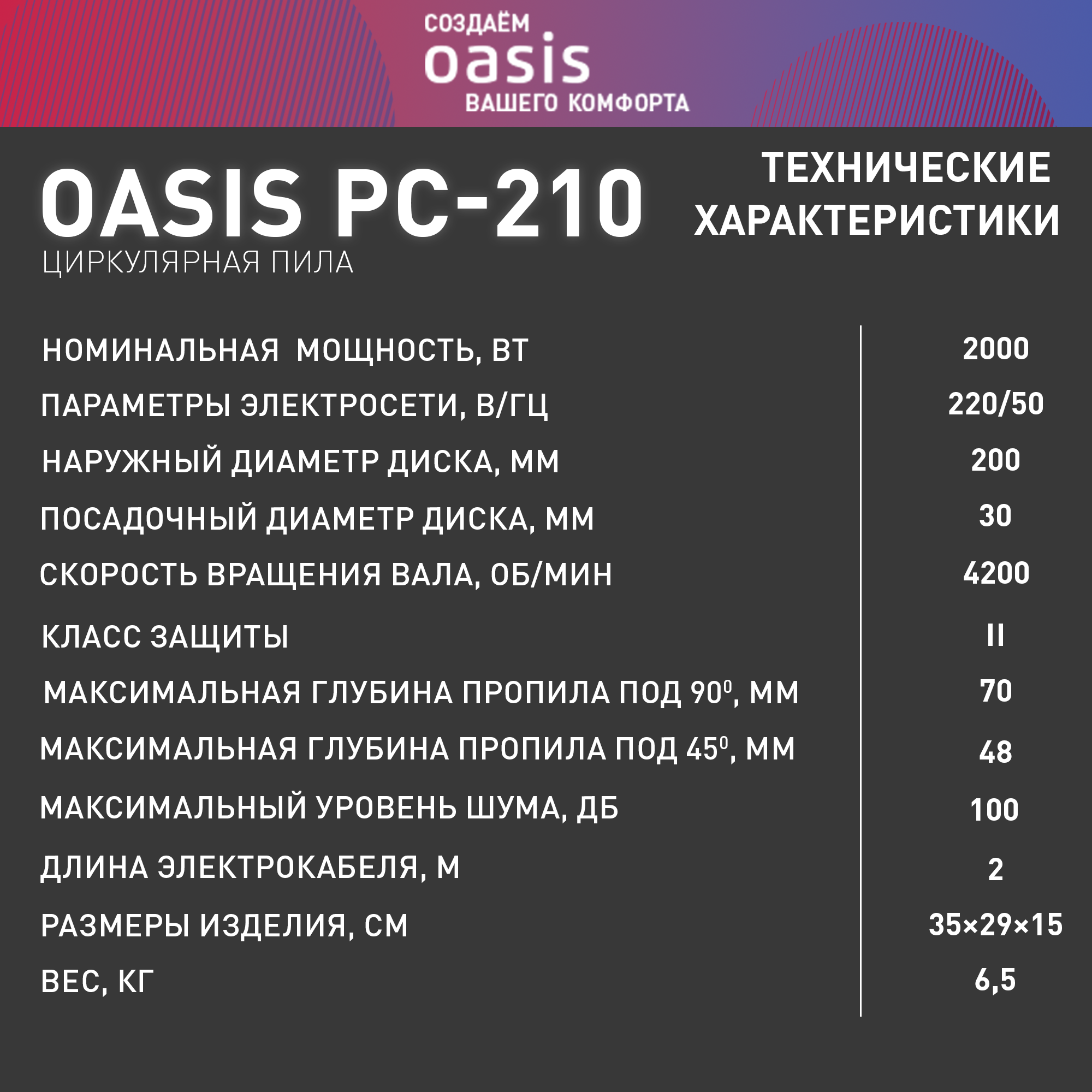 Электрическая циркулярная пила Oasis PC-210, 2000 Вт, 210 мм