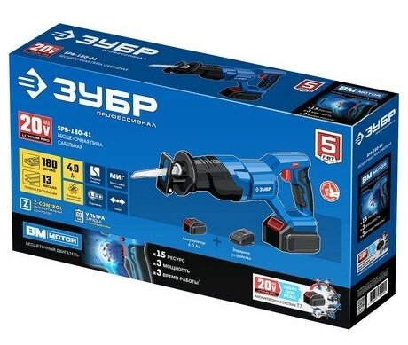 ЗУБР 20В бесщеточная пила сабельная, без АКБ, в коробке, Профессионал. SPB-180