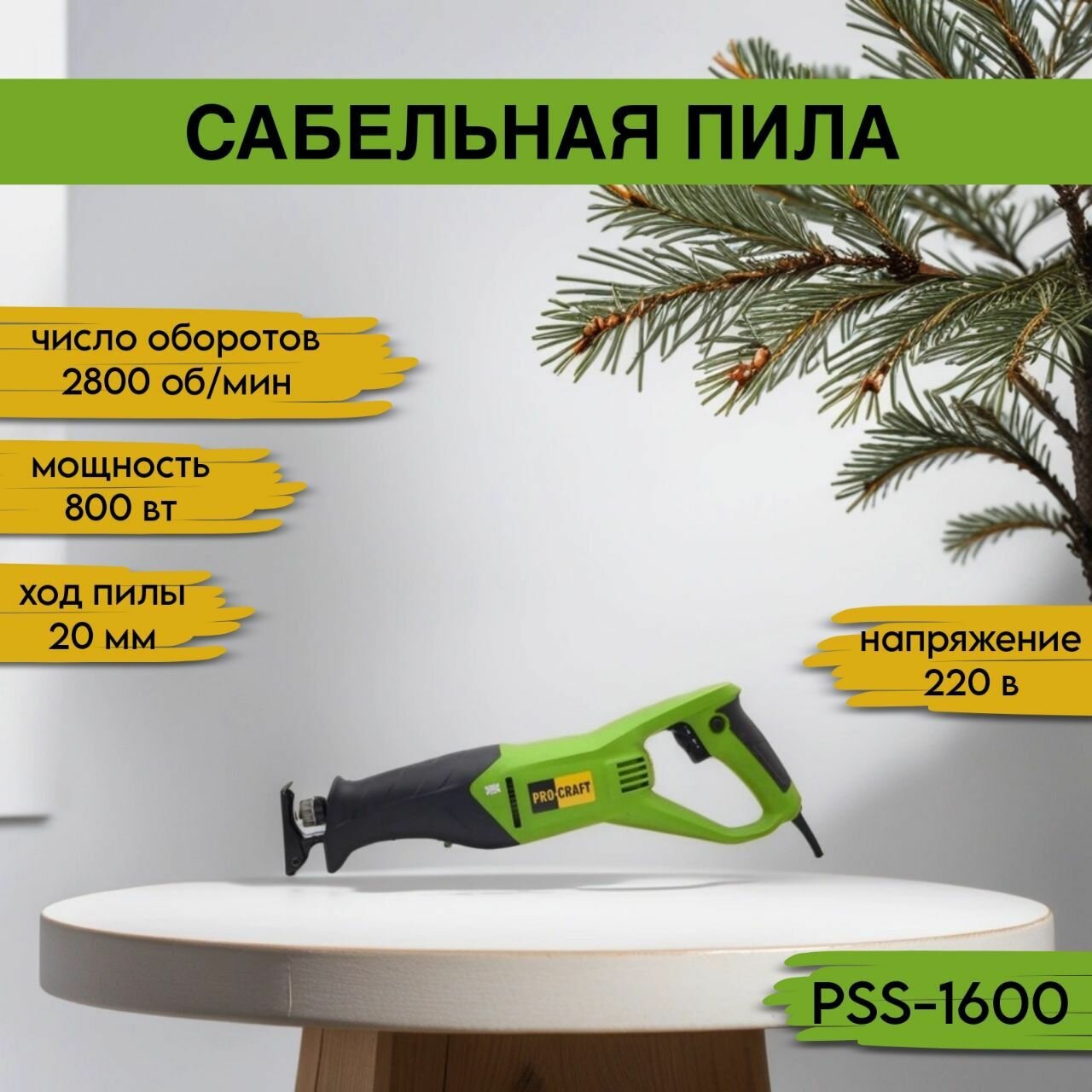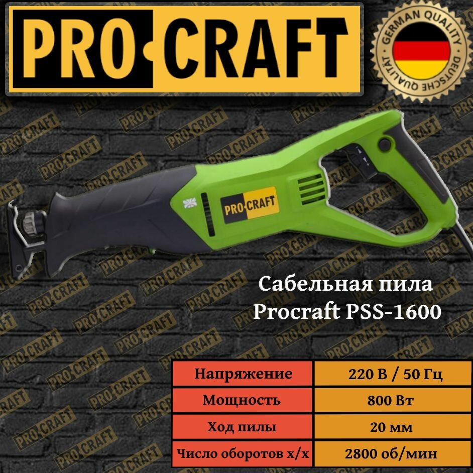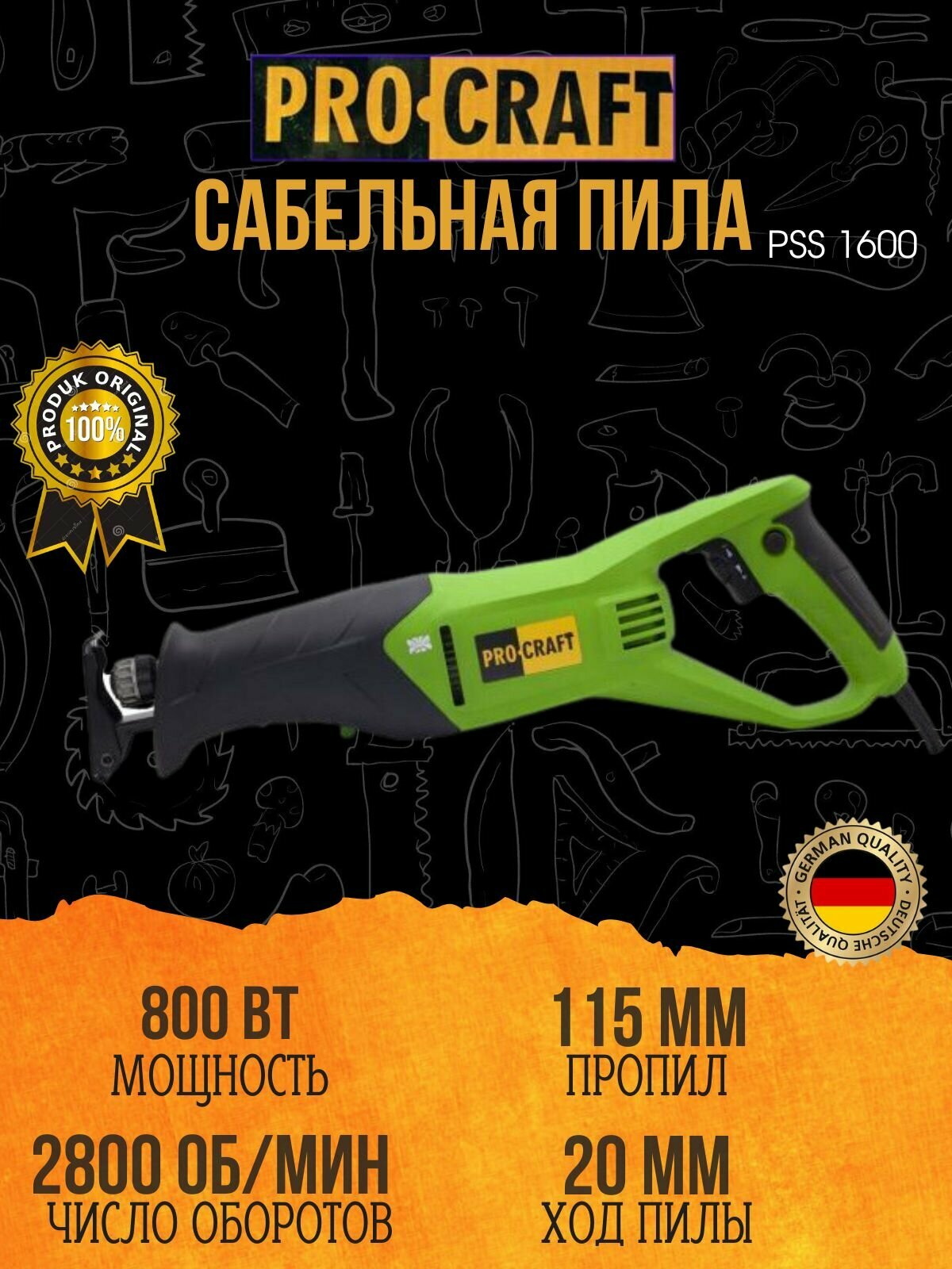 Сабельная пила ProCraft PSS 1600, 2800 ход/м , 800Вт, пропил 115мм