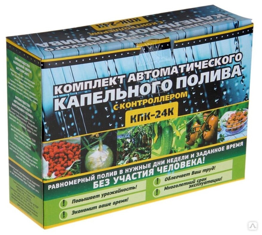 | Дополнительная информация | Система капельного автоматического полива растений теплицы, парника и грядки КПК 24 К с таймером для участка дачи, сада или огорода и подробная инструкция по эксплуатации |