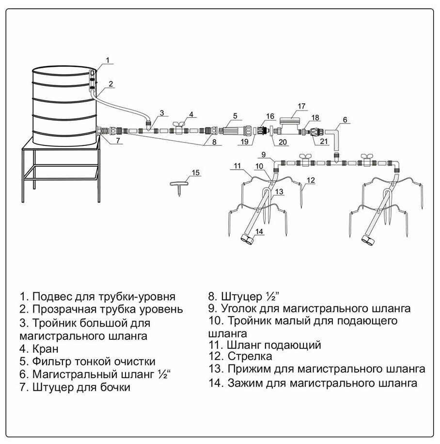 Капельный полив от ёмкости с таймером, на 30 растений, ЖУК