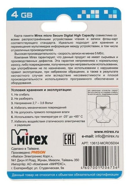 Ниже Вы можете прочитать отзывы на Mirex <13612-mcrosd04> microSDHC 4Gb Class4 ., ознакомится с подробными характеристиками, посмотреть интересные обзоры и фотографии на Mirex <13612-mcrosd04> microSDHC 4Gb Class4 ..