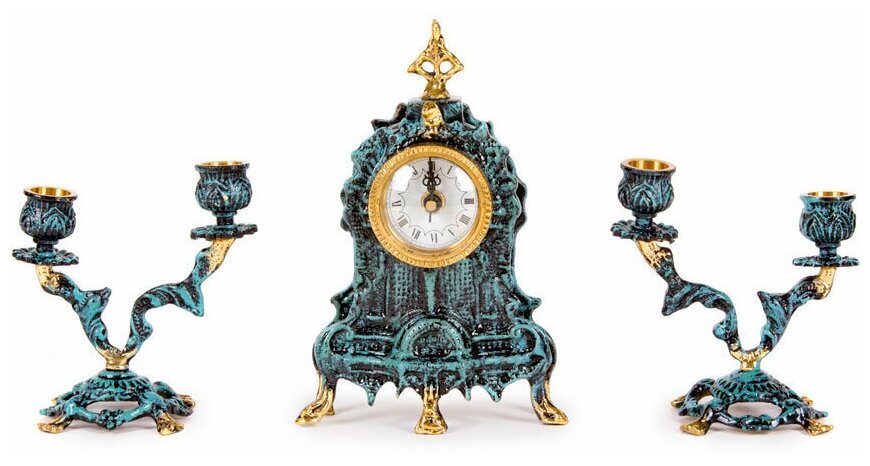 Купить Часы настольные Франк с канделябрами на 2 свечи, набор из 3 предм. VR-5401/4003-P KNP-VR-5401/4003-P