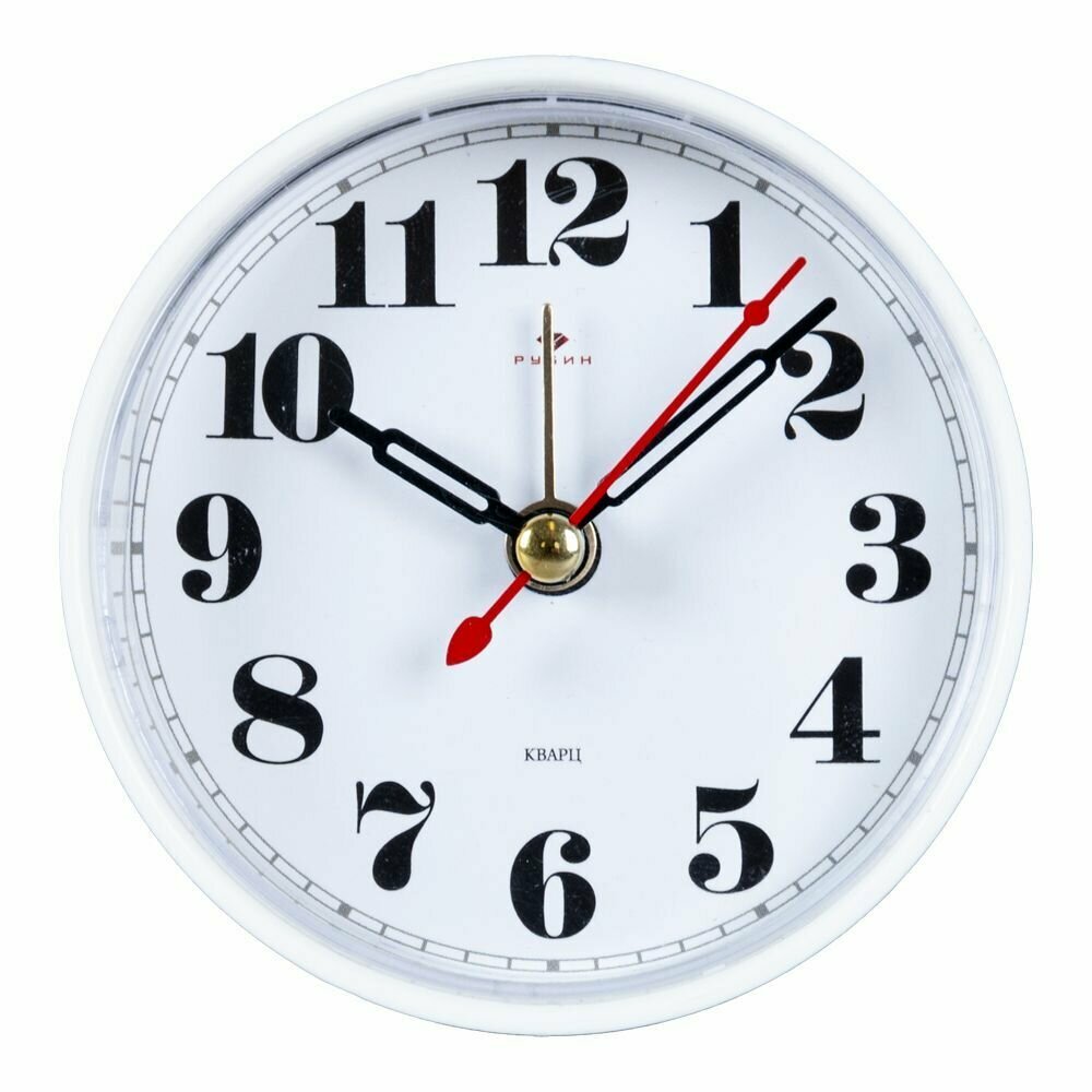 Рубин Будильник "Классика", дискретный ход, 8 х 8 х 3.7 см, белый