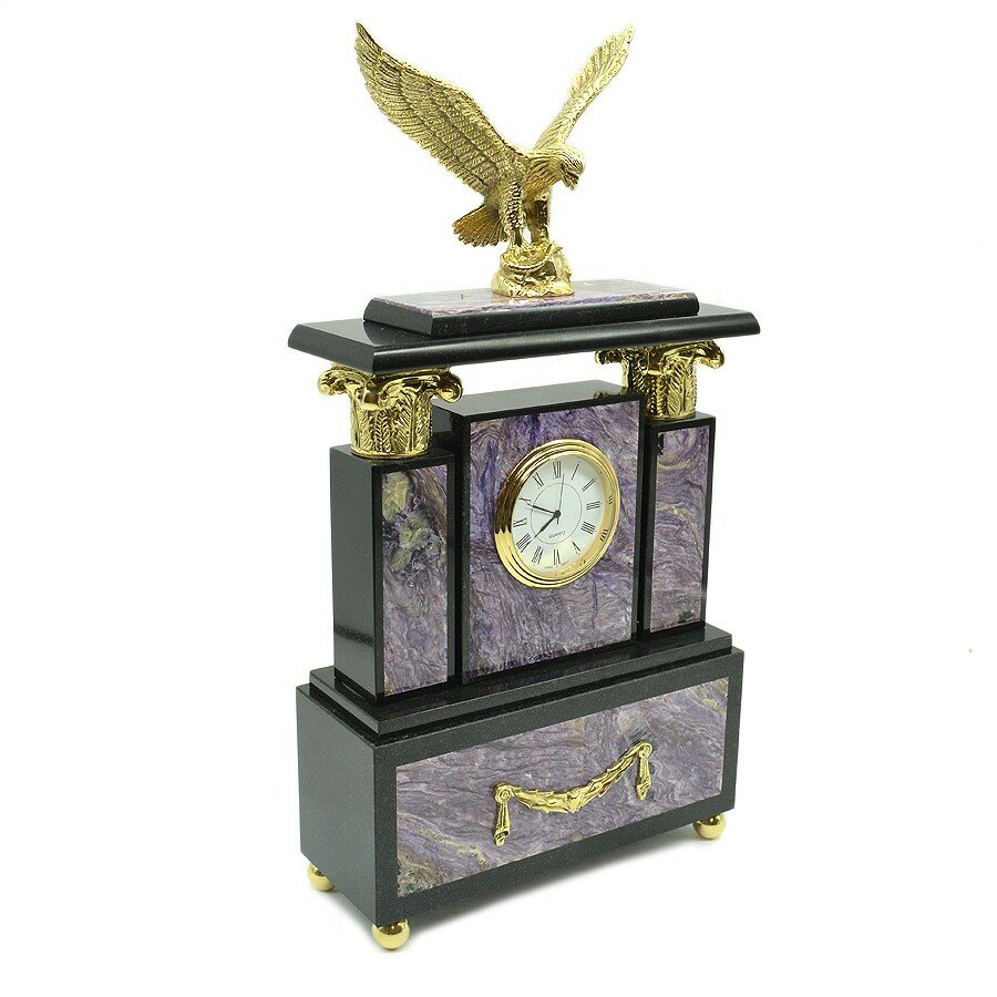Купить Часы каминные из чароита и долерита «Орёл»