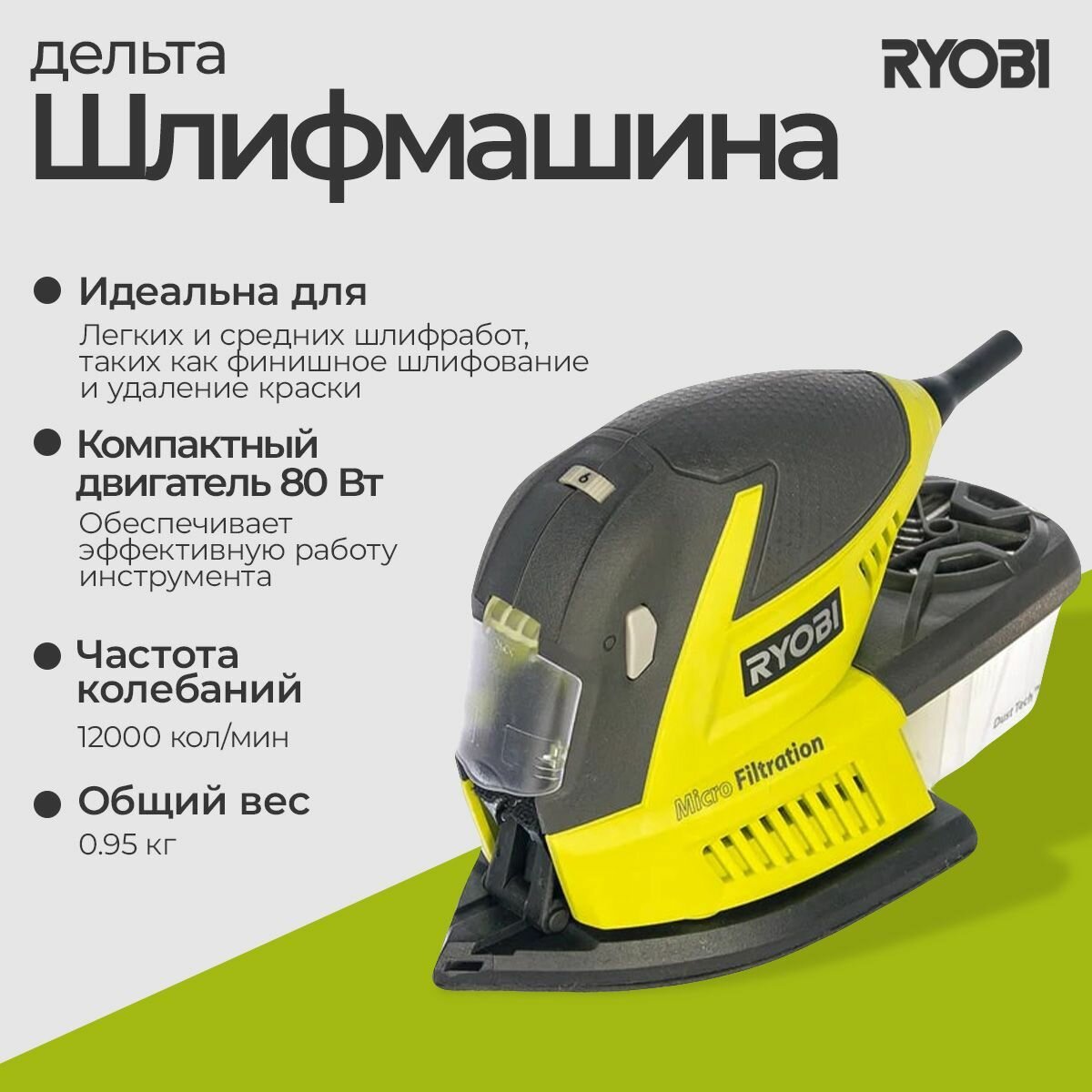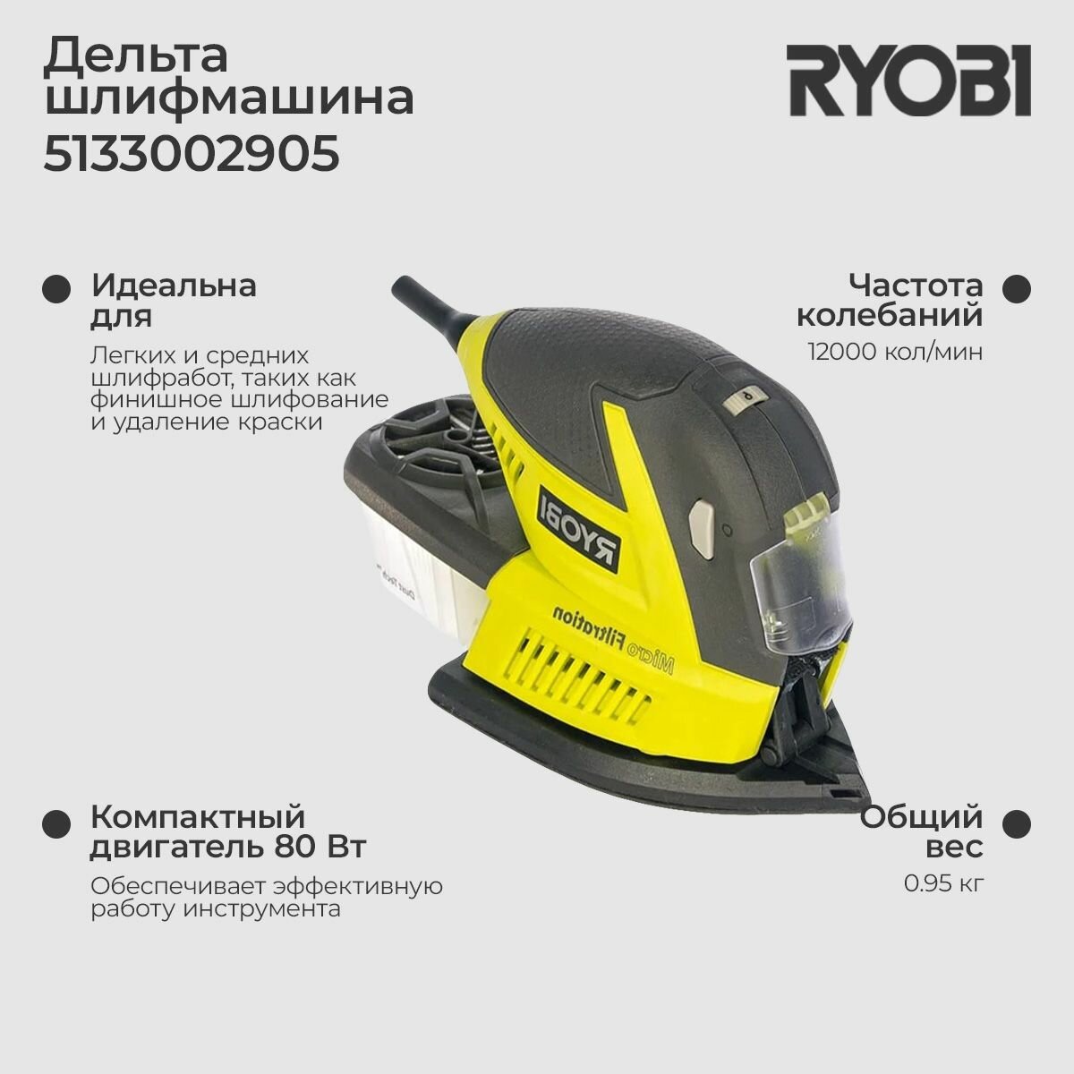 Ryobi Дельташлифмашина 80W RPS80-G 5133002905 интересное: