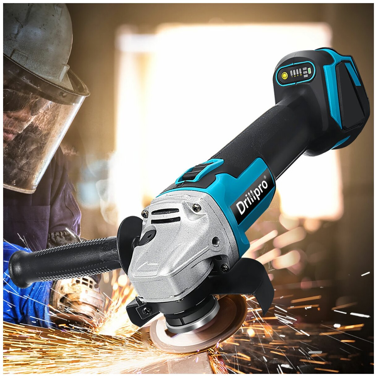 Шлифмашина угловая аккумуляторная бесщеточная (УШМ, болгарка) Drillpro, 125 мм, регулировка оборотов, с 2 АКБ и ЗУ, совместима с АКБ Makita 18V LTX
