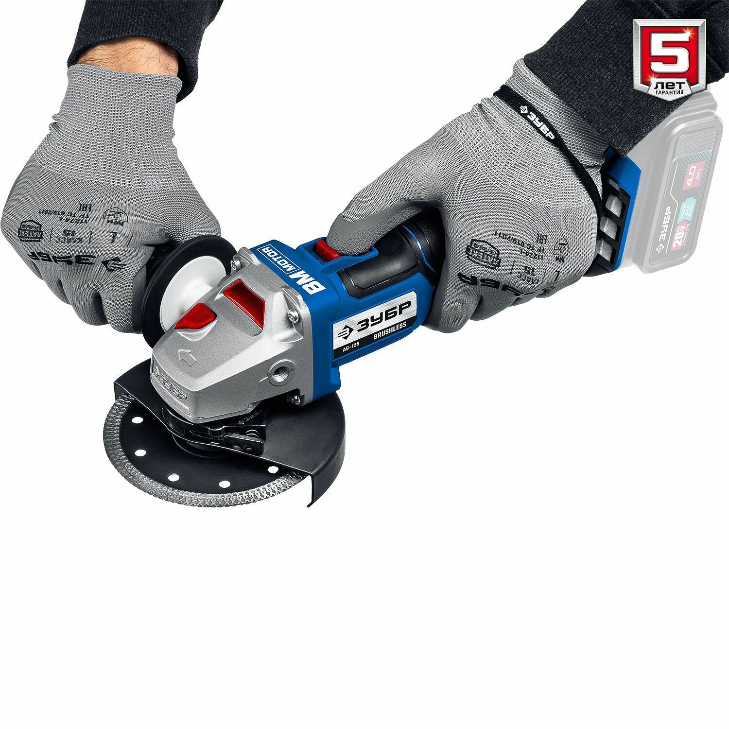 Аккумуляторная бесщеточная угловая шлифмашина Зубр AB-125-41