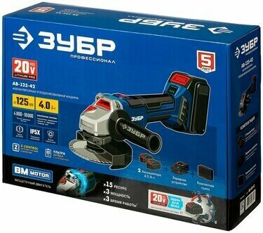 Бесщеточная УШМ ЗУБР Профессионал 20В 1 АКБ 4Ач ( AB-125-41 )