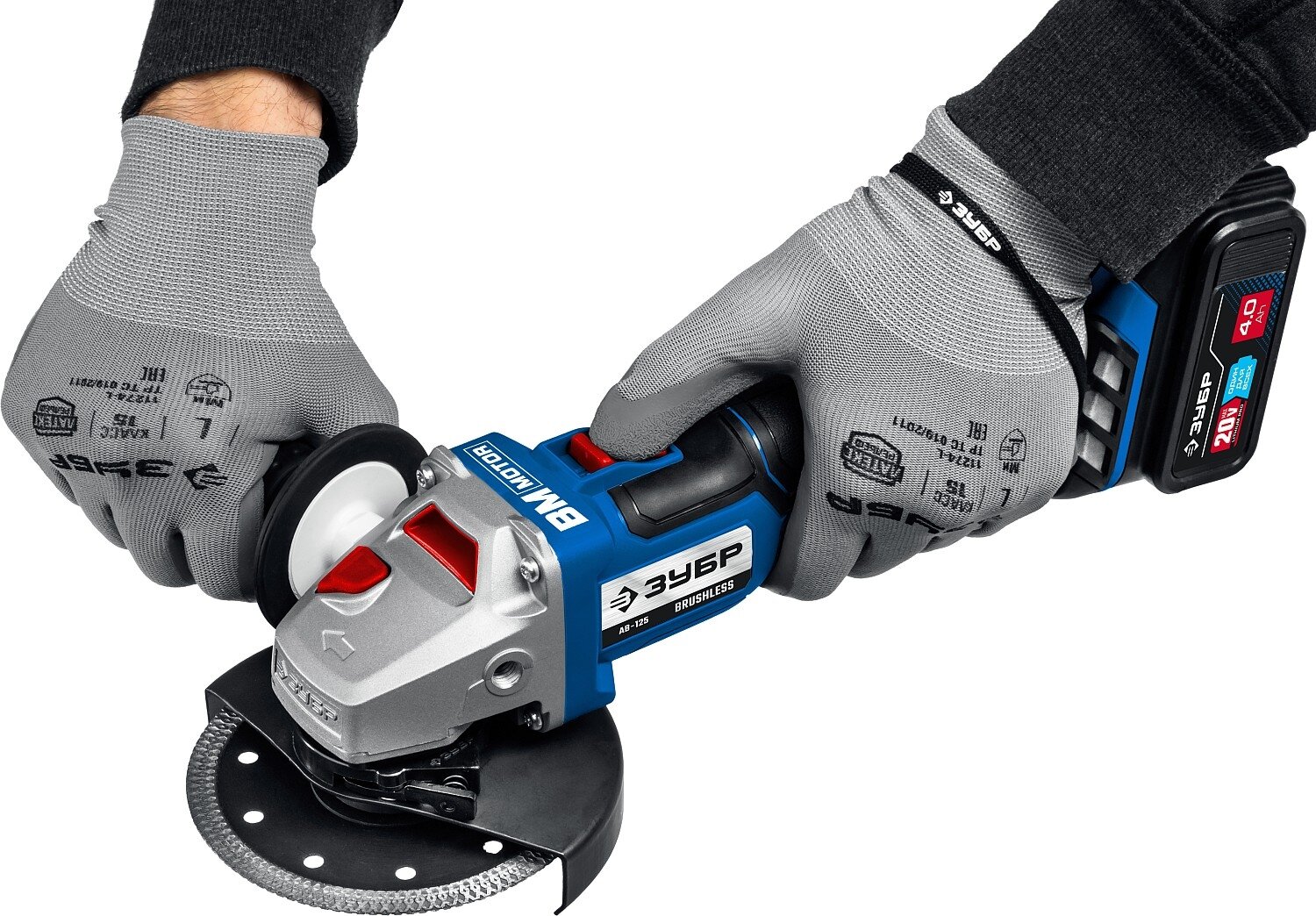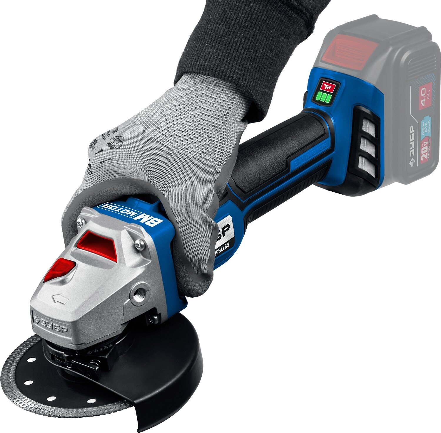 Аккумуляторная бесщеточная угловая шлифмашина Зубр AB-125-41