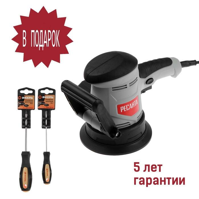 Эксцентриковая шлифмашина "Ресанта" ЭШМ-125Э, 450 Вт, d=125 мм, 4000-13000 об/мин + отвертка./В упаковке шт: 1 интересное: