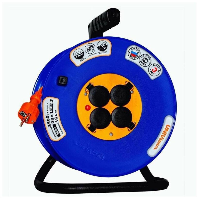 Удлинитель UNIVersal с заземлением 30 м на катушке 3,5 кВт 4 розетки ПВС 3х2,5 кв.мм IP44