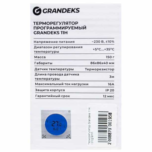 Терморегулятор Grandeks 11H программируемый 3 кВ интересное:
