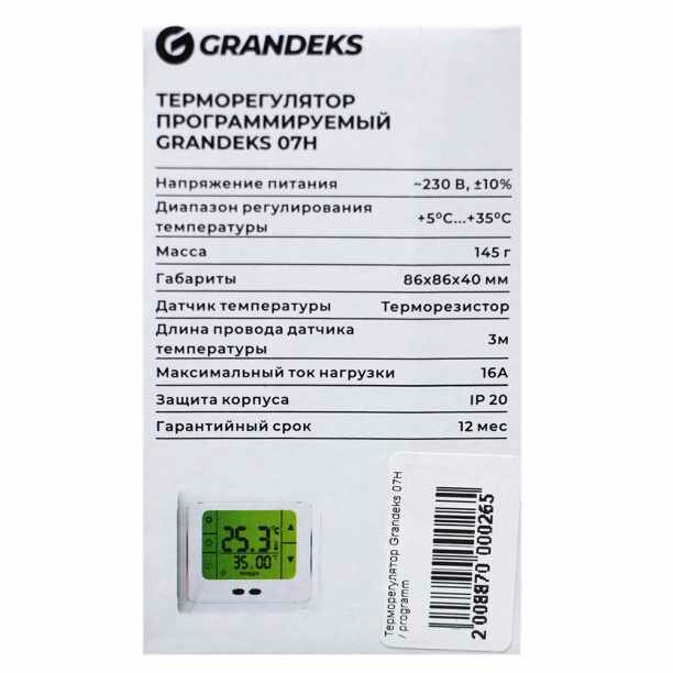 Терморегулятор Grandeks G07H сенсорный программируемый интересное: